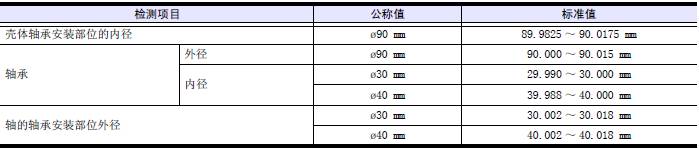 轉(zhuǎn)動(dòng)軸承,如果回轉(zhuǎn)不順暢,則更換軸承。檢測(cè)軸承座和軸承的安裝部位,嚴(yán)重磨損時(shí)更換新品。檢測(cè)軸和軸承的安裝部位,嚴(yán)重磨損時(shí)更換新品。