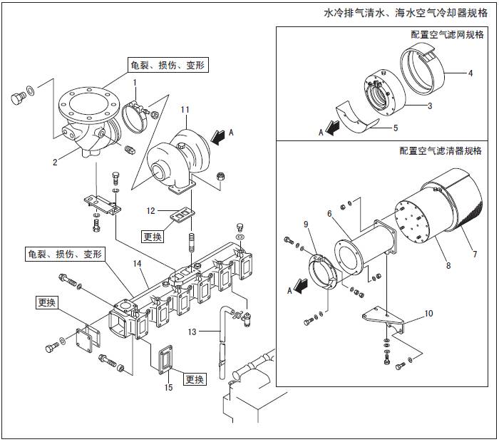 三菱S6R發(fā)動(dòng)機(jī)排氣系統(tǒng)的拆卸,檢測(cè)