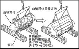 (2) 水平吊起三菱S6R柴油發(fā)動機(jī)曲軸,小心地從上方吊出。