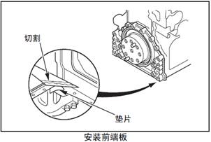 (4) 確認(rèn)前端板的下部和三菱S6R柴油發(fā)動(dòng)機(jī)三菱S6R柴油發(fā)動(dòng)機(jī)曲軸箱體的底部是否平齊。小心地剪除露出外面的墊片邊緣。