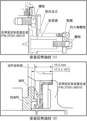 (4) 旋緊導向法蘭上的螺栓,將油封插入正時齒輪箱內。