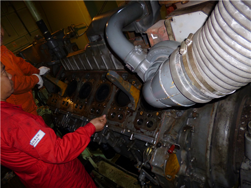 (3) 確認三菱S6R柴油發(fā)動機凸輪軸能輕松地轉動。