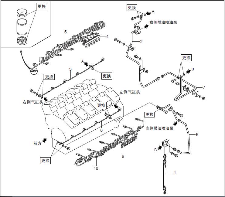 燃油三菱S12柴油發(fā)動機噴油管、燃油溢流管的拆卸、檢測