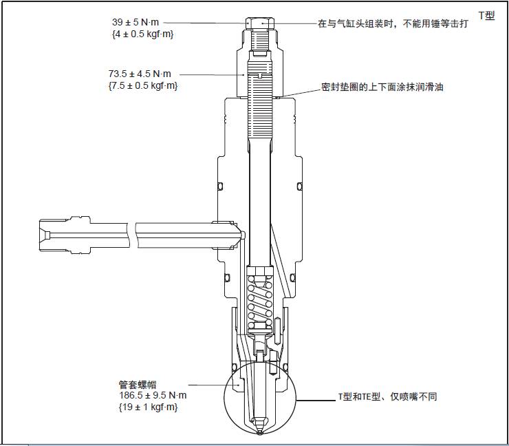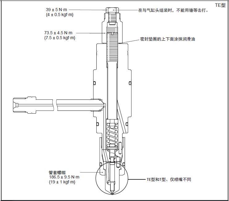 必須按照規(guī)定的扭矩緊固管套螺帽。旋緊過(guò)度時(shí),會(huì)影響針閥的動(dòng)作,引起排氣惡化或針閥卡死等故障。