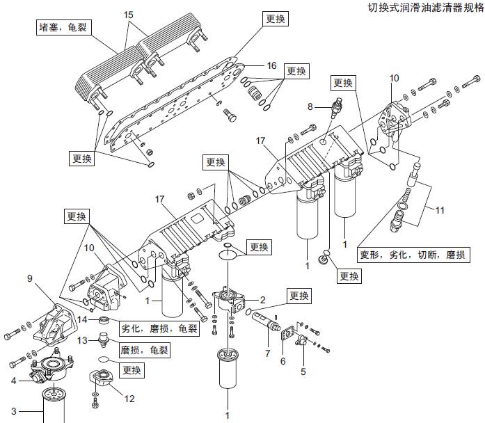 2.4 潤滑油濾清器、潤滑油濾清器報(bào)警器、釋放閥、左側(cè)潤滑油冷卻器的解體、檢修