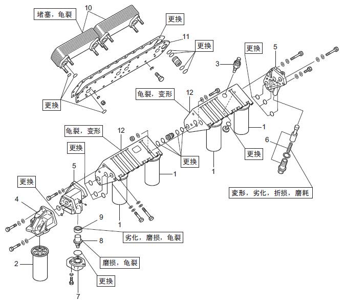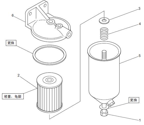 (2) 濾清器報(bào)警器的亮燈開始?jí)毫Τ鰳?biāo)準(zhǔn)值時(shí),更換新品。