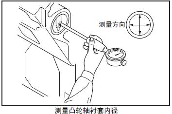 注: 測量內徑時,注意不要損傷三菱R16柴油發(fā)動機凸輪軸襯套的內面。