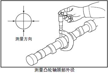測量三菱R16柴油發(fā)動機凸輪軸頸部正交兩個方向的外徑。超過極限值時更換新的三菱R16柴油發(fā)動機凸輪軸。
