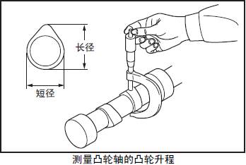 測量各凸輪的長徑和短徑,求出凸輪升程。超過極限值時更換新的三菱R16柴油發(fā)動機凸輪軸