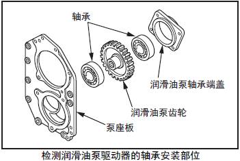 檢測三菱R16柴油發(fā)動機機油泵座板的軸承安裝部位,嚴重磨損時更換新品。