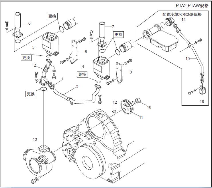2 三菱S16柴油機空氣冷卻器水泵(PTAW 規(guī)格約24 kg)(MPTK 規(guī)格約34 kg)