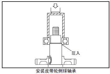 (2) 用壓力機壓入三菱S16柴油機皮帶輪螺帽側(cè)球軸承。