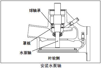 (1) 葉輪側(cè)球軸承的罩板側(cè)朝向葉輪側(cè),壓入三菱S16柴油機水泵軸。