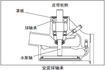 (2) 球軸承的罩板側(cè)朝向葉輪側(cè),壓入三菱S16柴油機水泵軸。