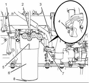 5.  Position engine oil cooler (9) on the engine oil