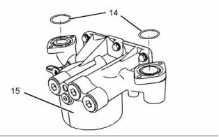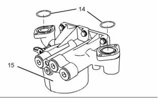 11. Remove O-ring seals (14) from engine oil filter