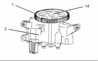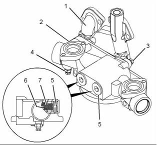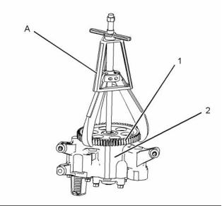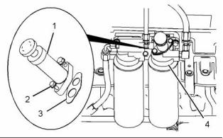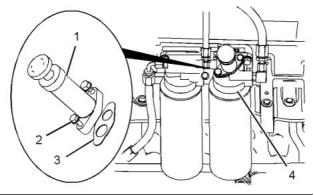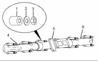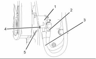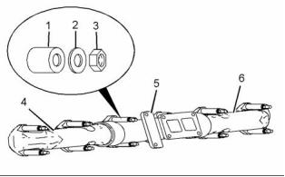 1.  Loosen nut (1). Rotate bolt (2) in order to release