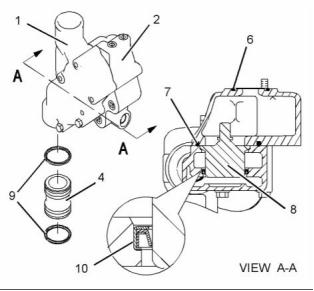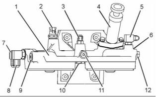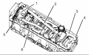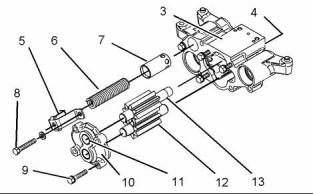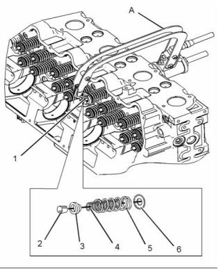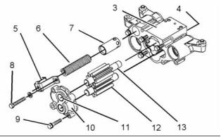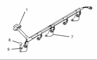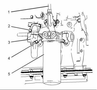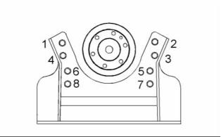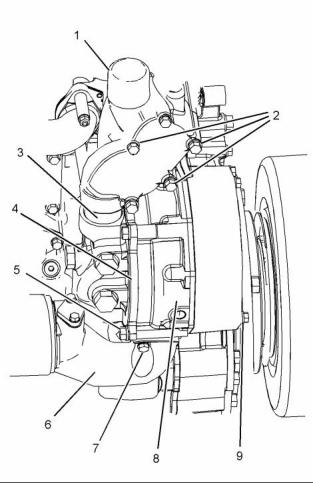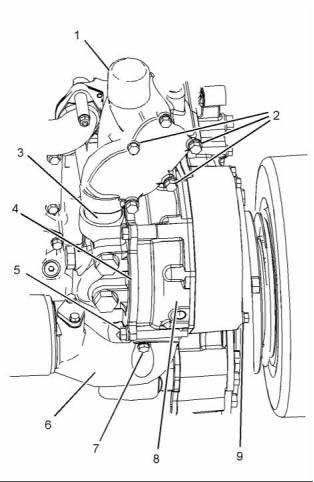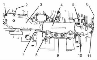 through bolt 9 to a torque of 135 N·m (100 lb ft).