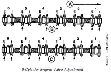 John Deere約翰迪爾強鹿6缸柴油發(fā)動機點火順序1-5-3-6-2-4. 氣門調整方法