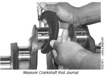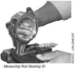 5. Subtract crankshaft journal OD from rod bearing ID to determine oil clearance. Replace bearings if oilclearance is out specification.