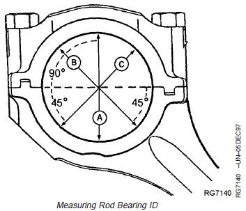8. If difference between the greatest and least measurement exceeds out-of-round specification, replace connecting rod.