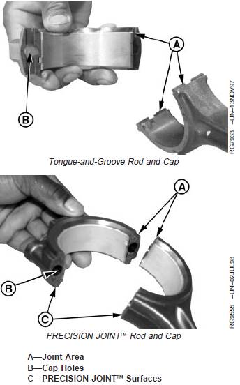 IMPORTANT: Do not nick the joint surfaces of the rod and cap. This is very critical on PRECISION JOINTä rods to ensure proper seating. Never scrape these surfaces (C) with a wire brush or other tool. The interlocking mating surfaces must be preserved.