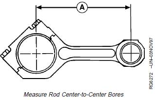 Measure rod center-to-center bores (A) (with bushingsremoved). Compare to specifications given below.Replace rod if necessary.