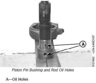 IMPORTANT: Oil holes (A) MUST be aligned. If holes are not aligned, remove and discard bushing. Install a new bushing. DO NOT attempt to reuse the bushing. Install bushing in rod.