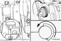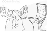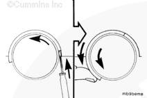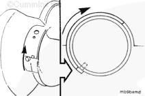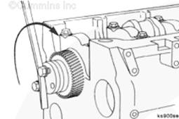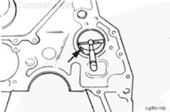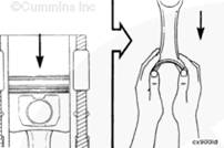 將盤車工具(零件號(hào) 3824591)插入飛輪殼中,并使其與飛輪齒圈嚙合。然后可以手持 1/2-英寸棘輪扳手或撬棍,轉(zhuǎn)動(dòng)曲軸。