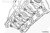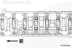 注: 主軸承蓋有位置編號(hào)。從缸體前端的 1 號(hào)開始,編號(hào)必須朝向康明斯ISB5.9 G CM2180發(fā)動(dòng)機(jī)的凸輪軸側(cè)。