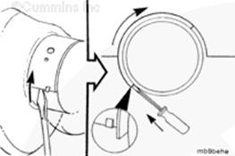 如果使用帶式活塞環(huán)壓縮器,確保帶的內(nèi)側(cè)沒有掛在活塞環(huán)的缺口并折斷活塞環(huán)。