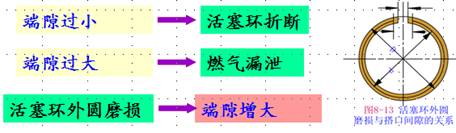 端隙:活塞環(huán)處于工作狀態(tài)時(shí)的開口大小。是活塞環(huán)工作時(shí)的熱脹間隙。防止受熱而卡死。