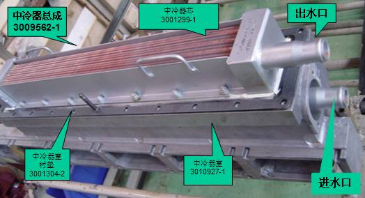 卻水流經(jīng)中冷器芯與增壓后的空氣進(jìn)行熱交換,從