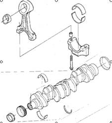(9)曲軸裝配時的注意事項:A)主軸瓦的油孔應對準缸體的油孔, B)主軸承蓋具有方向性,螺栓有力矩要求。C)注意清潔和嚴防碰撞。