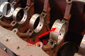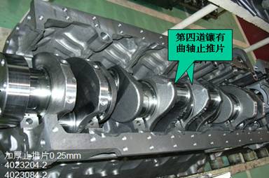 (5)在第四道主軸頸處裝有止推軸承,止推軸承有四片,下止推片有定位凸臺,裝配時油槽面向曲軸。
