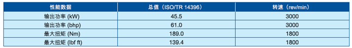 3000 rpm時(shí),功率達(dá)45.5 kW/61.0 bhp