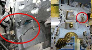 造成此故障的現(xiàn)象:在缸體排氣側(cè)挺桿室蓋板處,出現(xiàn)漏油現(xiàn)象 造成此故障的原因分析:缸體側(cè)蓋板受熱變形或涂膠不良導致漏油現(xiàn)象。 此故障的維修解決方法:將側(cè)蓋板拆下,去除粘膠部分,然后將側(cè)蓋板向內(nèi)彎曲20度的弧形2分鐘,再涂膠裝配。