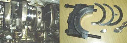 造成此故障的現(xiàn)象:拆解發(fā)動機油底殼時,發(fā)現(xiàn)有已經(jīng)扭曲的曲軸止推瓦破裂脫落的瓦邊,拆下4缸軸承蓋,發(fā)現(xiàn)曲軸止推瓦破碎裂,導致磨壞曲軸和缸體軸承座及軸承蓋的前端面,并打壞缸套。 造成此故障的原因分析:主要原因是用戶在更換變速箱時(“大同”更換成“陜齒”變速箱),由于一軸尺寸不一樣,導致更換上去后,曲軸承擔了軸向向前的推力,造成第四止推瓦磨損。 此故障的維修解決方法:更換缸體、曲軸及相關損壞件。具體圖片如下: