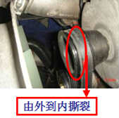造成此故障的現(xiàn)象:發(fā)電機皮帶被撕裂成條狀,具體圖片參見下圖 造成此故障的原因分析:發(fā)電機皮帶輪與風扇皮帶輪不在同一個平面上,另外發(fā)電機皮帶輪與風扇皮帶輪的倒角過小,導致皮帶被撕成條狀。 此故障的維修解決方法:更換發(fā)電機皮帶、皮帶輪或調整皮帶輪在同一個平面上。通常是在發(fā)電機的安裝支架上加墊片,將發(fā)電機向前移動1-2毫米。