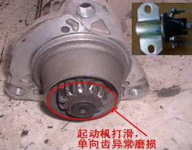 造成此故障的現(xiàn)象:起動機空轉,發(fā)動機無法啟動 造成此故障的原因分析:起動機繼電器損壞、單向齒磨損或飛輪齒環(huán)磨損 此故障的維修解決方法:更換相關損壞件