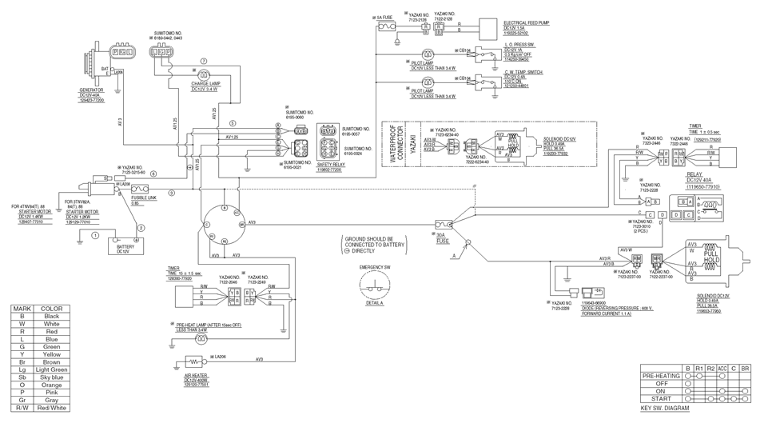 上面兩圖為啟動馬達的兩種不同的接線圖,左圖采用了繼電器,右圖則之間由鑰匙開關來控制啟動馬達.啟動時間不要超過10秒,超過15秒則視為誤操作??蛰d測試馬達不應超過30秒.