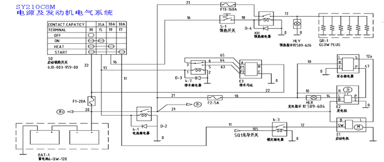 SY210C8M挖掘機電氣系統(tǒng)組成: