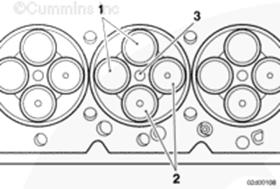 康明斯ISF3.8 CM2220 AN 和 IAN 發(fā)動(dòng)機(jī)缸蓋密封墊采用專門的金屬設(shè)計(jì),水孔周圍的兩側(cè)都有印制的 O 形圈。密封墊上的壓紋密封住了缸孔。密封墊還提供節(jié)流作用,控制缸體流至缸蓋的冷卻液流。本手冊(cè)涉及的發(fā)動(dòng)機(jī)不需要進(jìn)行缸蓋密封墊分級(jí)。對(duì)于缸蓋或缸體燃燒表面的重修,可以使用厚度增大的缸蓋密封墊。