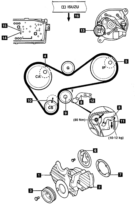 注意:從發(fā)動機(jī)的前部應(yīng)該可以讀到皮帶上的字母‘ISUZU’(如圖16所示)。