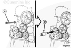 一些康明斯KTA柴油發(fā)動(dòng)機(jī)水泵惰輪帶有采用壓配合設(shè)計(jì)的惰輪軸,在拆卸惰輪時(shí)無需將該軸從缸體上拆下來。