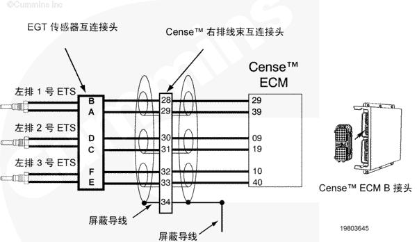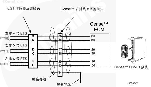 排氣溫度傳感器電路圖向 CENSE™ ECM 提供排氣溫度信號(hào)。排氣溫度傳感器為熱電偶。熱電偶是將兩種不同的金屬焊接起來構(gòu)成的。接合點(diǎn)隨溫度變化產(chǎn)生極小的電壓。