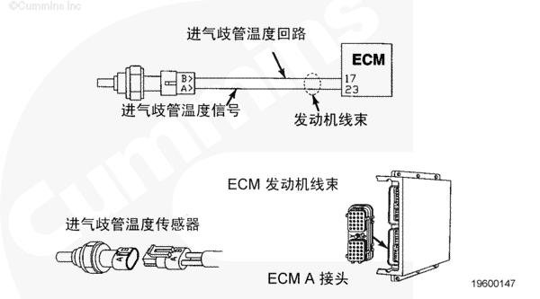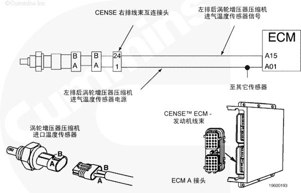 左排前進(jìn)氣歧管溫度傳感器電路圖向 CM500 ECM 提供左排前進(jìn)氣歧管空氣溫度信號(hào)。