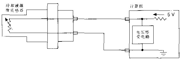溫度傳感器的溫度電阻作為5V分壓電路的一部分,溫度傳感器的兩端與受壓電路相連接,當溫度傳感器的溫度電阻隨溫度發(fā)生變化時,受壓電路的電壓發(fā)生變化,該電壓被輸入到ECU接口電路的模數(shù)轉(zhuǎn)換電路。電壓與溫度之間的關(guān)系特性曲線被存儲在發(fā)動機的管理系統(tǒng)的ECU中。