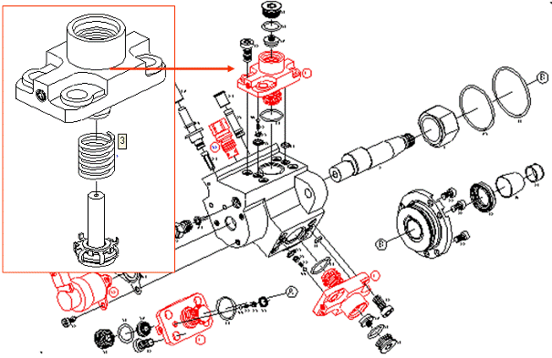 油泵總成由以下幾個(gè)功能單元緊湊的安裝在泵體上: