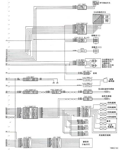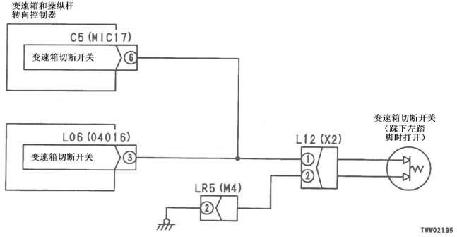 1)2檔R電池閥故障 2)變速箱和操縱桿控制器C1(雌)(10)-TL1(2)-T01(G)之間線束與電源短路,與機(jī)箱接地短路,觸點(diǎn)有故障或斷開 3)機(jī)箱-TL1(7)-T01(B)之間線束與機(jī)箱接地短路,觸點(diǎn)有故障或斷開 4)變速箱和操縱桿控制器有故障 | ||||